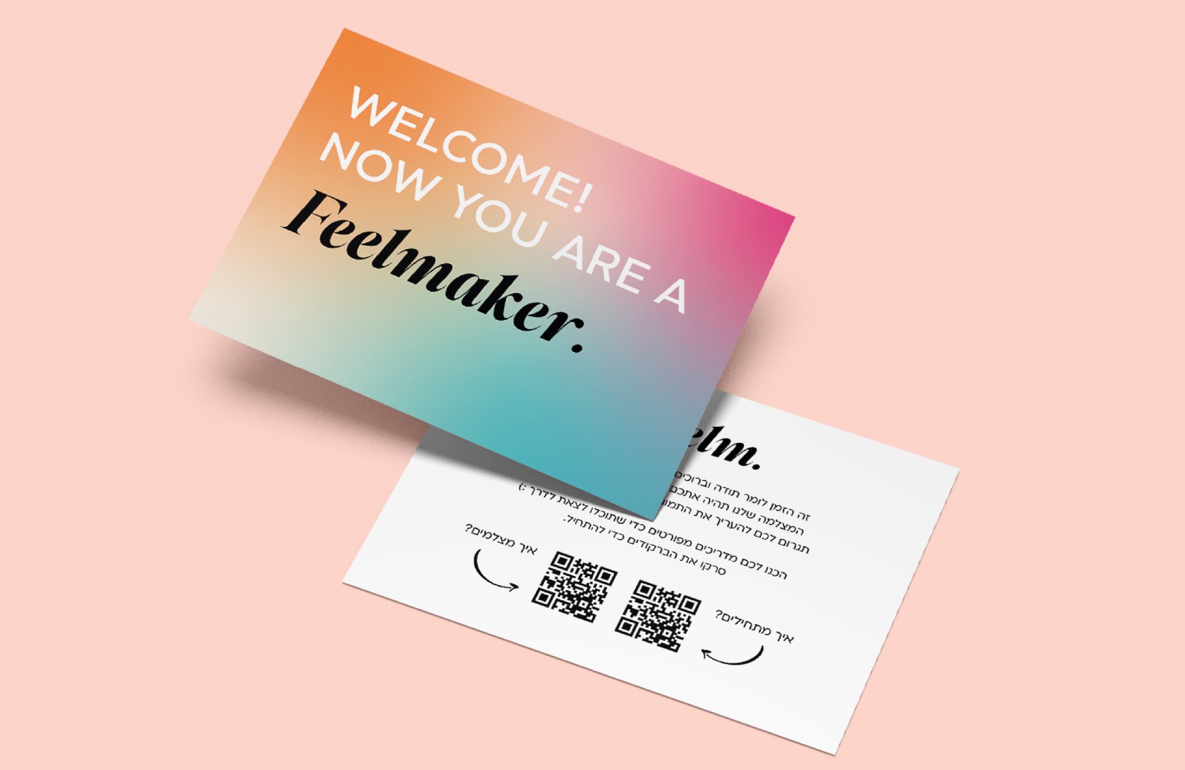 בנוסף, בכל קניית מצלמה מצורפת גלויה שתחדד כל דבר שאתה בתוך Feelmaker חדש צריך לדעת.